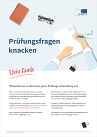 Aus diesem Grund haben wir den praktischen „u-form Prüfungsfragen Leitfaden“ zusammengestellt. Dieser Guide gibt eine Übersicht über die Aufgabentypen, die in der Prüfung vorkommen können. Wir zeigen, worauf es bei der Beantwortung ankommt und wie Fallstricke sicher aufgedeckt und umgangen werden.